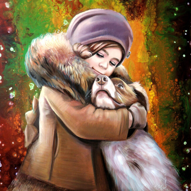 A similar personalised artwork can be commissioned, using your own portrait and emotional theme.